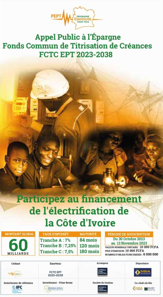 OPPORTUNITE D’INVESTISSEMENT – Fonds Commun de Titrisation de Créances du « Programme Electricité Pour Tous / FCTC EPT 2023-2038 »