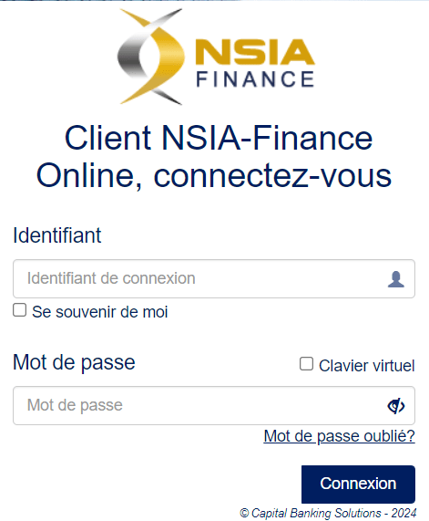 Connectez-vous à votre compte NSIA Capital Online en utilisant votre identifiant et votre mot de passe.